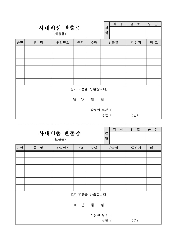 사내비품반출증(2부구성)