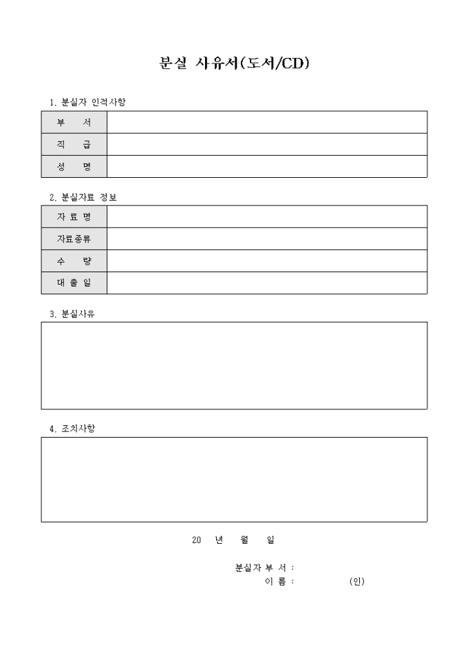 9,000원/월회사가 소장하고 있는 도서나 CD 등의 자료를 대출하였다가 분실하였을 경우 작성하는 분실사유서 양식입니다.
