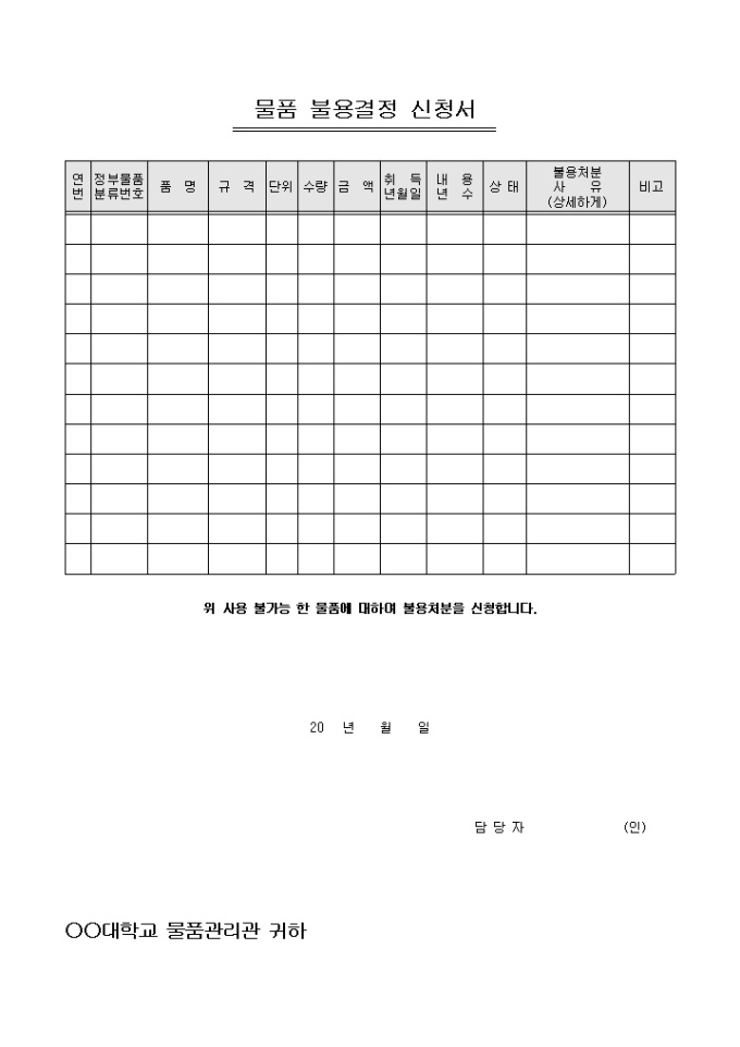 물품 불용결정 신청서