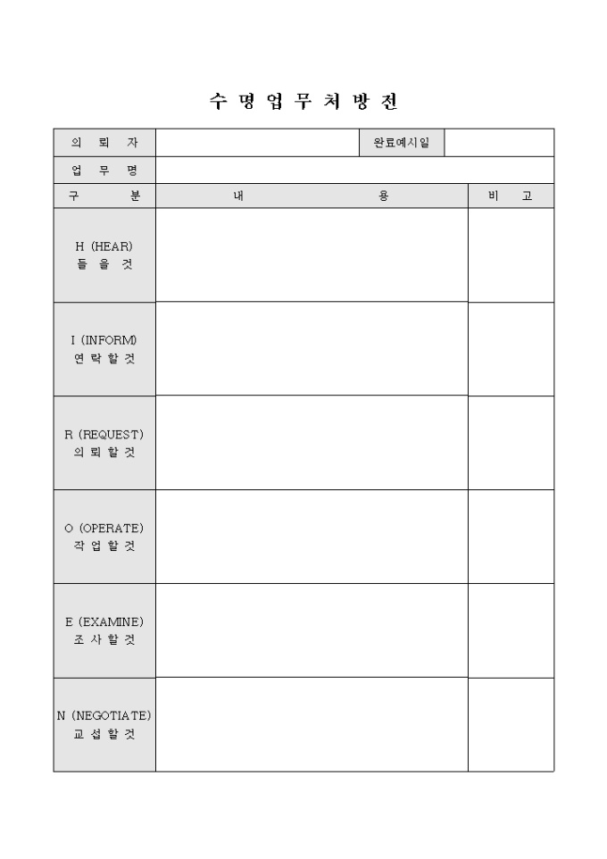 9,000원/월수명업무의 처리 방법과 내용 등을 효율적으로 작성할 수 있도록 제작된 서식입니다.