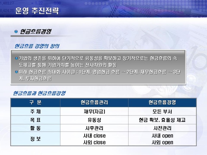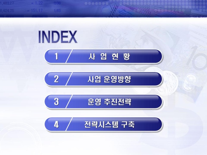 무회계부의 부서별 사업계획서입니다. 목차는 1.사업현황 2.사업운영방향 3.운영추진전략 4.전략시스템구축으로 구성되어있습니다.
