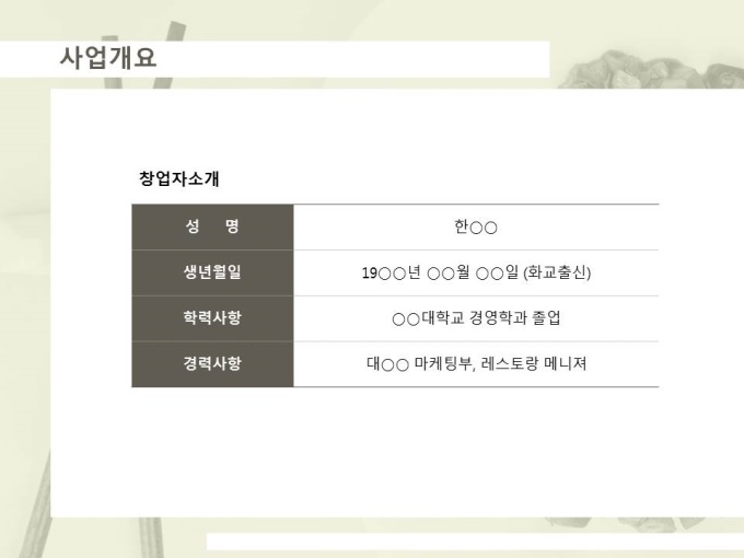 외식업 사업계획서