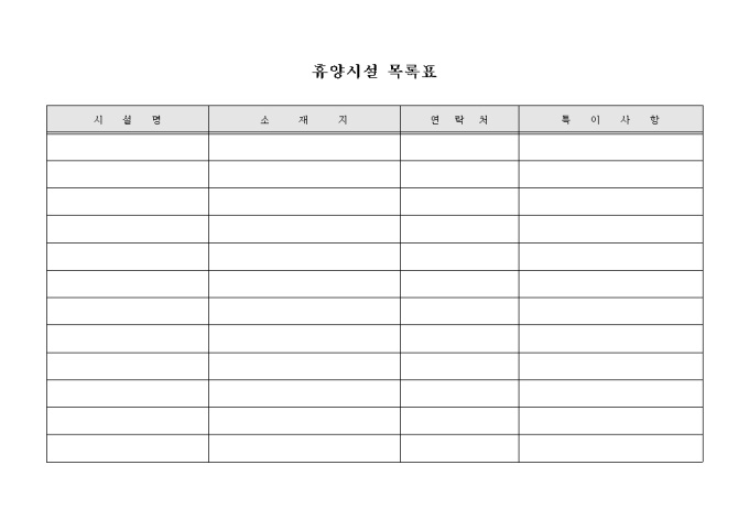 휴양시설 목록표