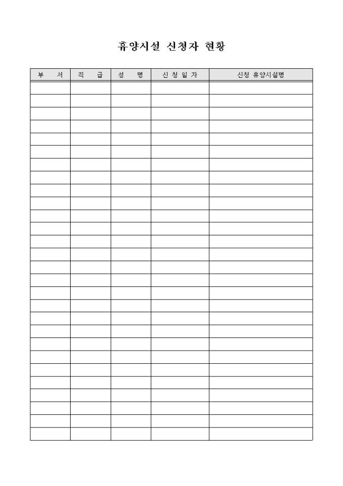 회사에서 운영하는 휴양시설의 사용을 희망하는 사원들의 신청현황을 관리하고자 할 경우 사용할 수 있게끔 제작된 서식입니다.
