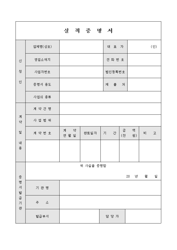 회사에서 사용하는 실적 증명서 입니다. 계약 및 영업에 대한 실적등을 증명시 사용합니다.