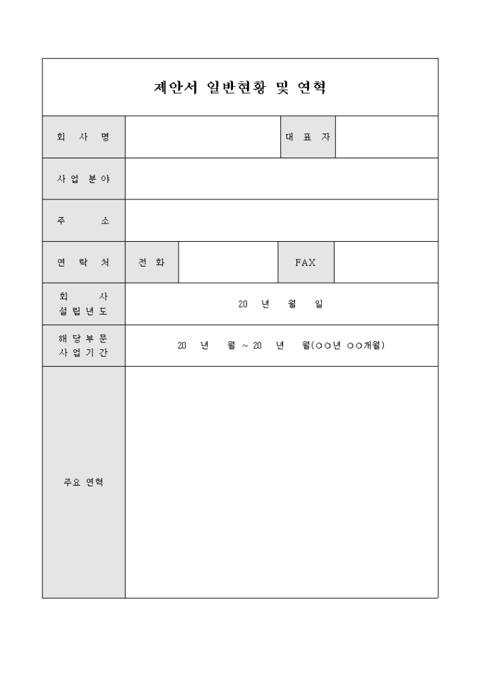 제안서 일반현황(연혁)