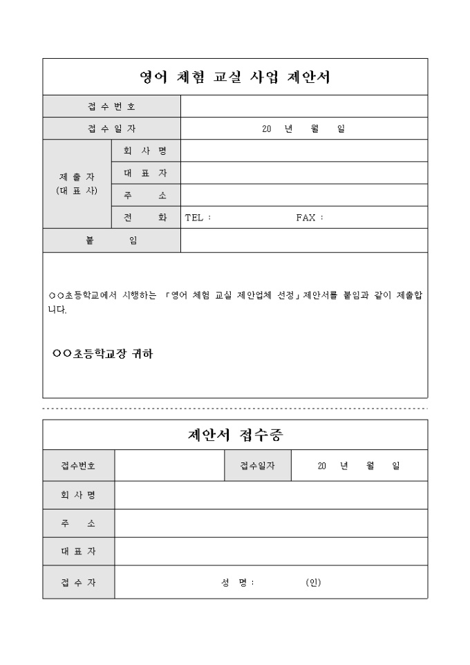9,000원/월초등학교에서 시행하는 영어체험교실 사업에 대한 제안시 사용됩니다.
