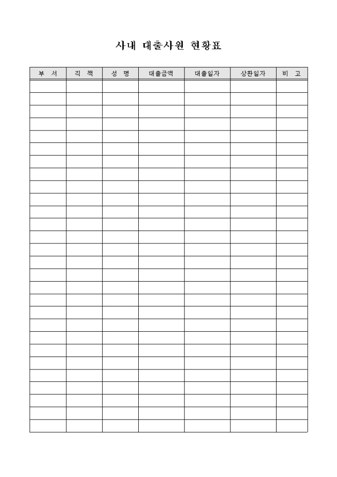 9,000원/월사내에서 복리후생의 일환으로 사내대출을 실시한 사원의 현황을 관리하고자 할 경우 사용할 수 있게끔 제작된 서식입니다.