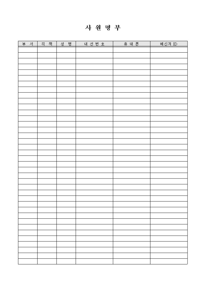 9,000원/월회사에 소속된 사원들의 내선번호, 휴대폰, 메신져 ID 현황을 기록하여 원활한 연락이 실시될 수 있는데 도움이 되고자 제작된 서식입니다.