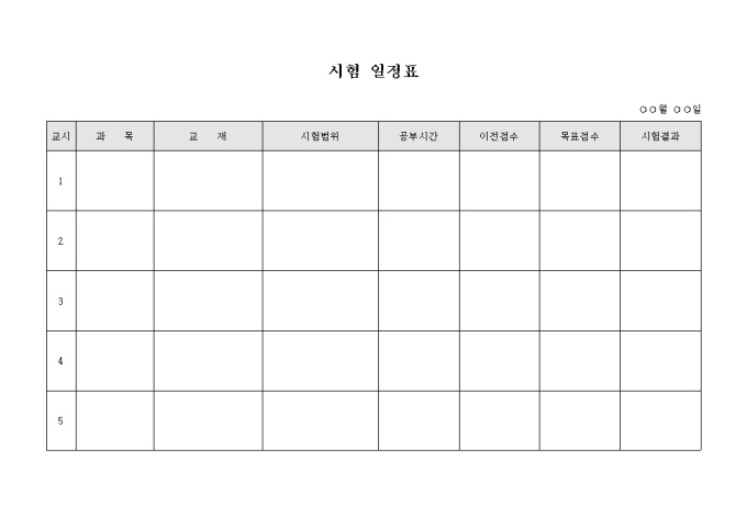 시험을 앞두고 공부 할 과목과 시험 범위 및 점수 등을 작성하고자 할 때 사용합니다.