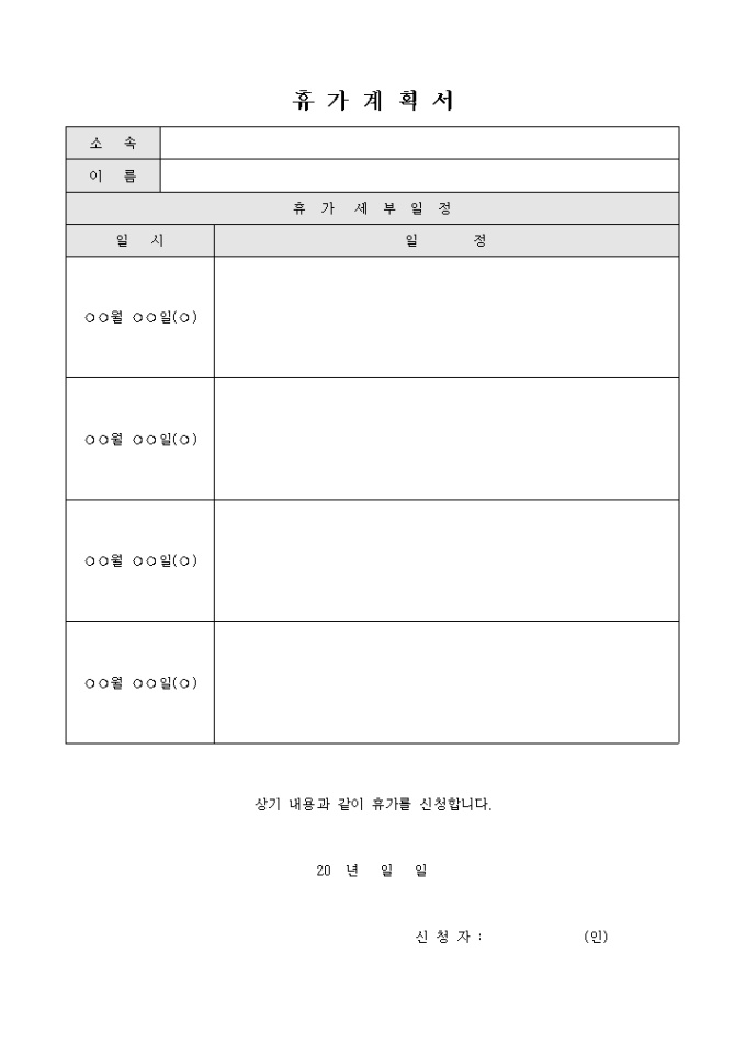 9,000원/월휴가 계획을 기록할 때 사용하는 서식으로 휴가 일시별 일정을 기록합니다.