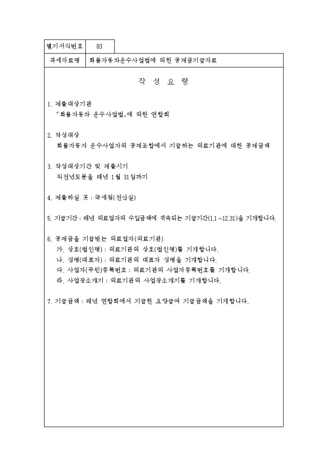 과세자료제출및관리에관한법률 제83호 화물자동차운수사업법에의한공제금지급자료 20070806