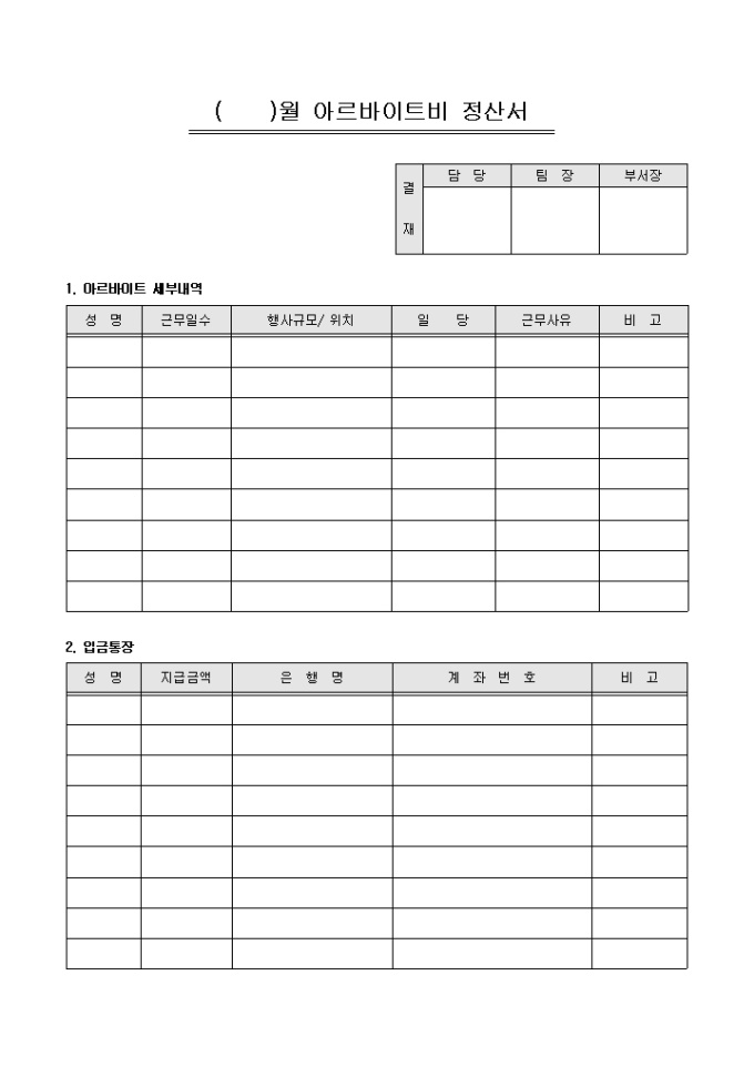 아르바이트비 정산서(행사)