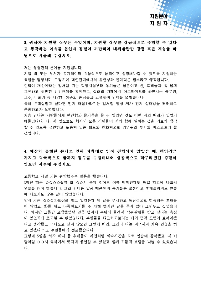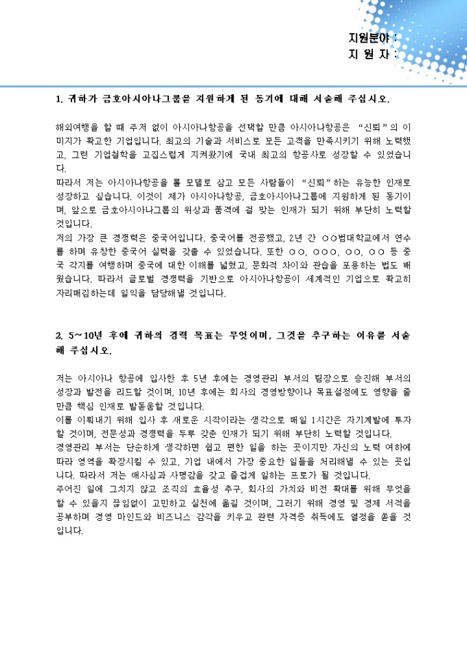 경영관리 자기소개서(금호그룹)