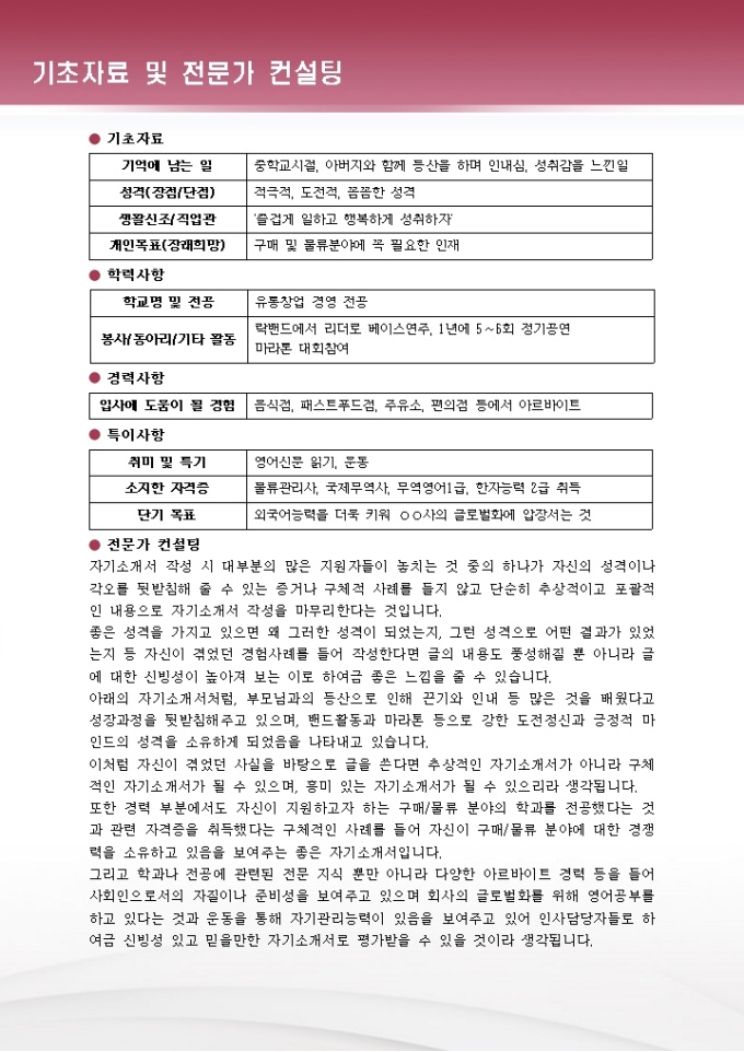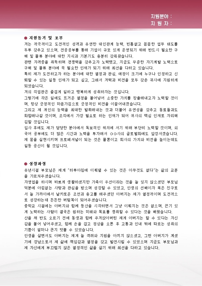구매,물류 자기소개서
