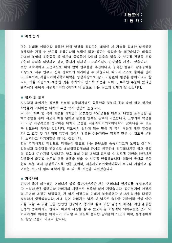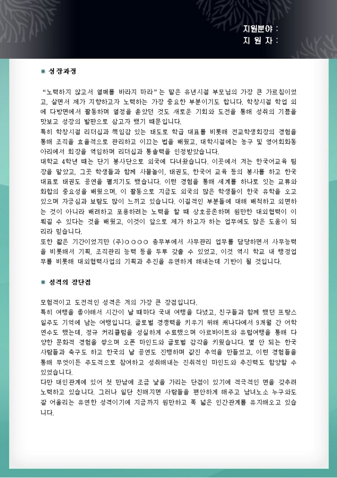 사무 자기소개서(대학교)