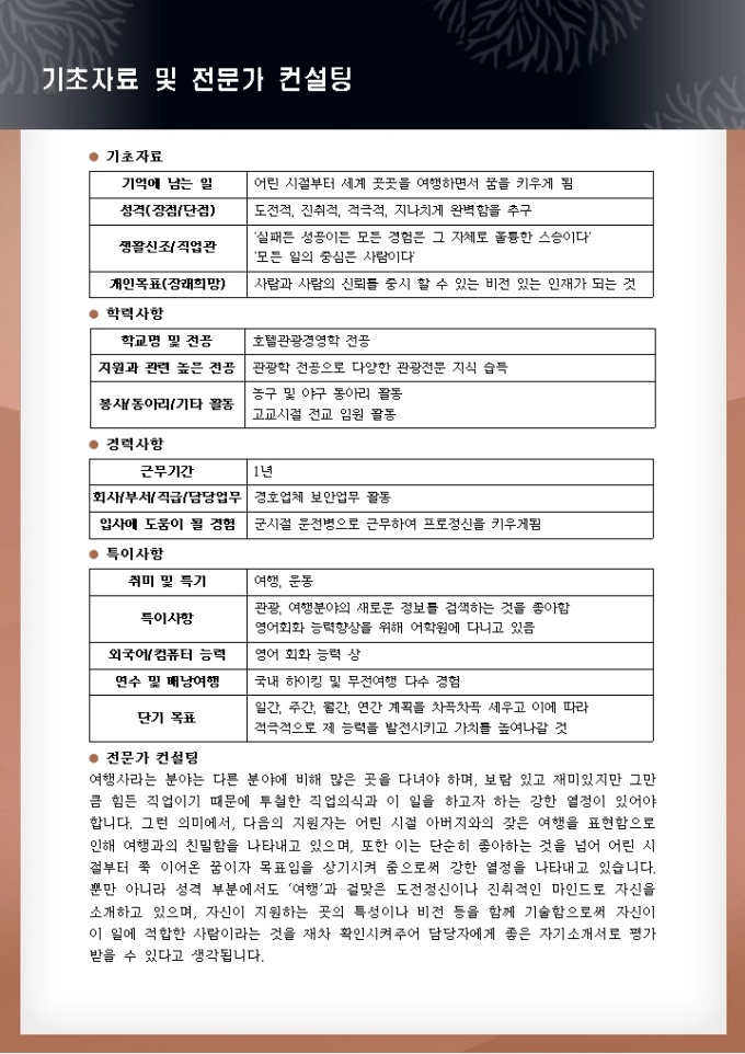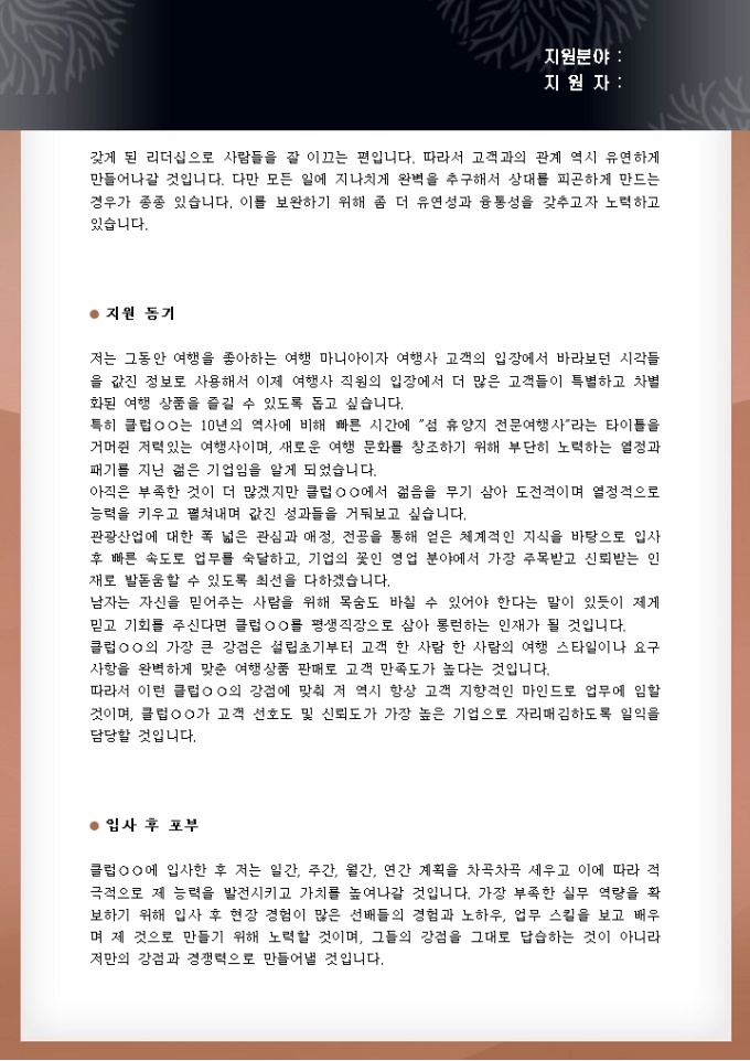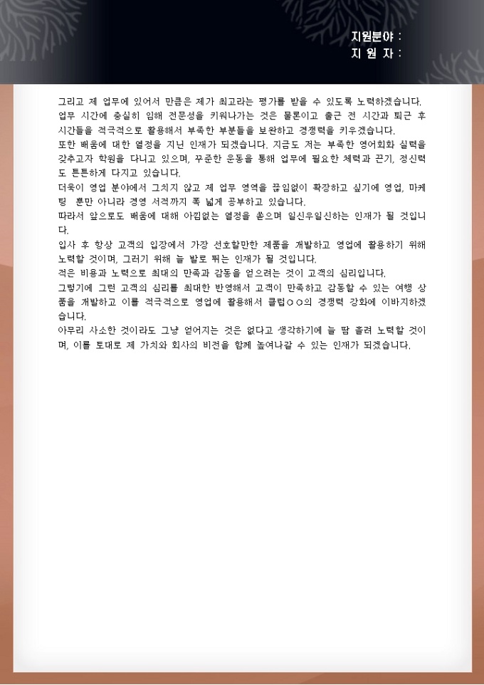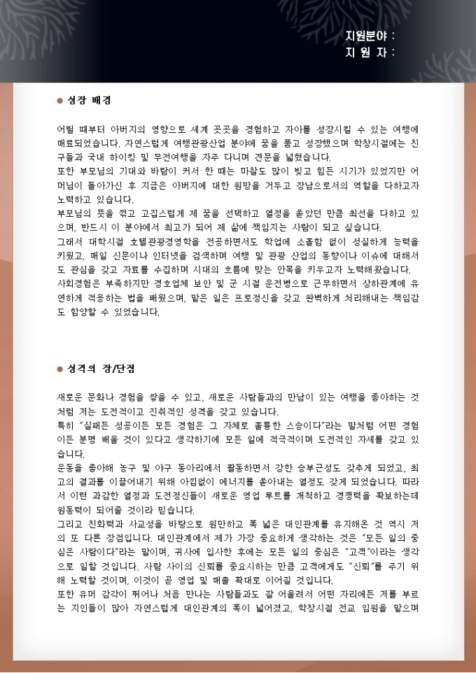 여행사영업직 자기소개서