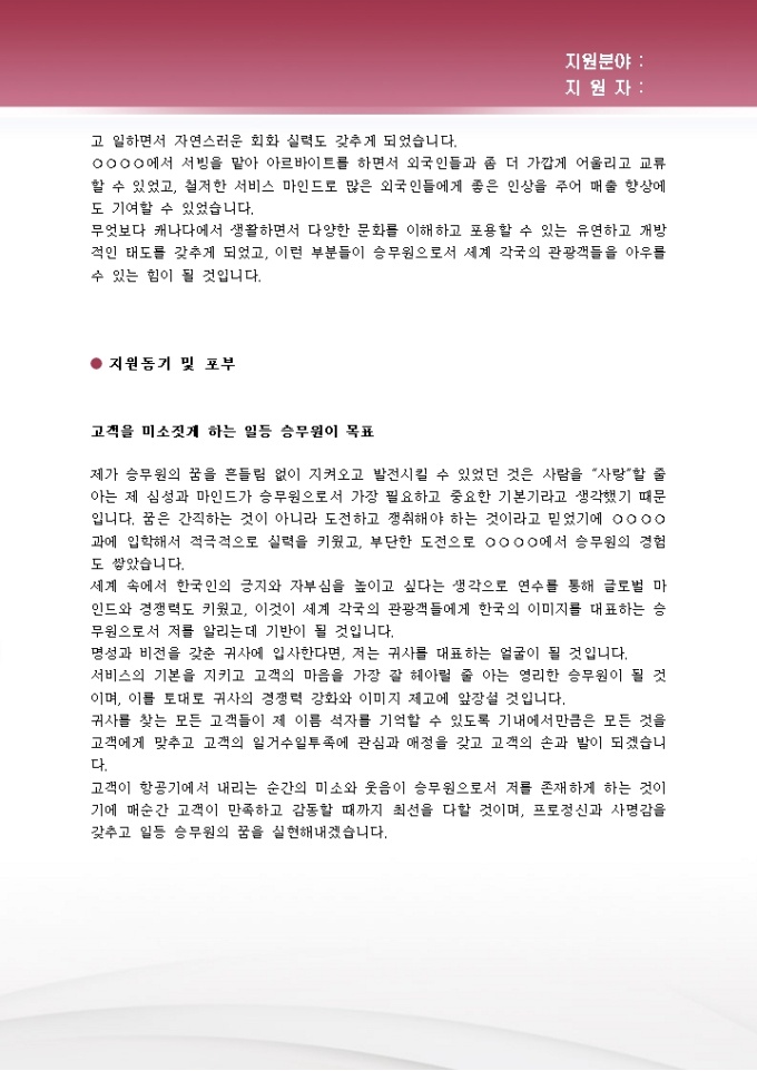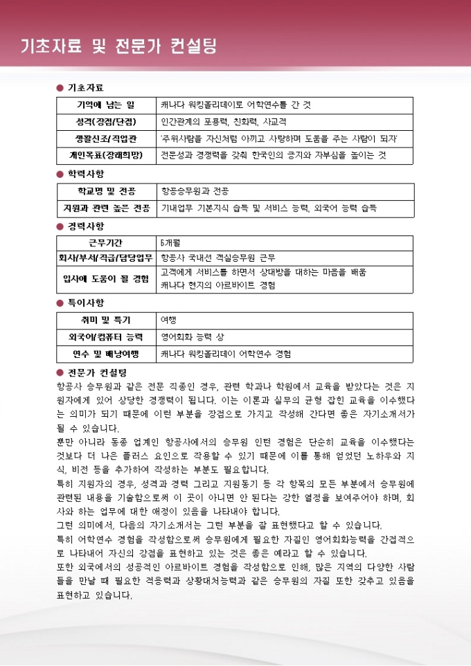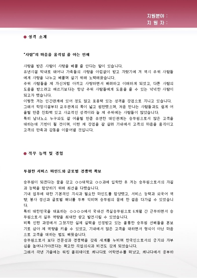항공승무원 자기소개서