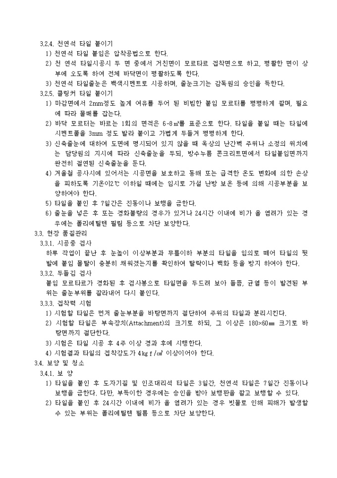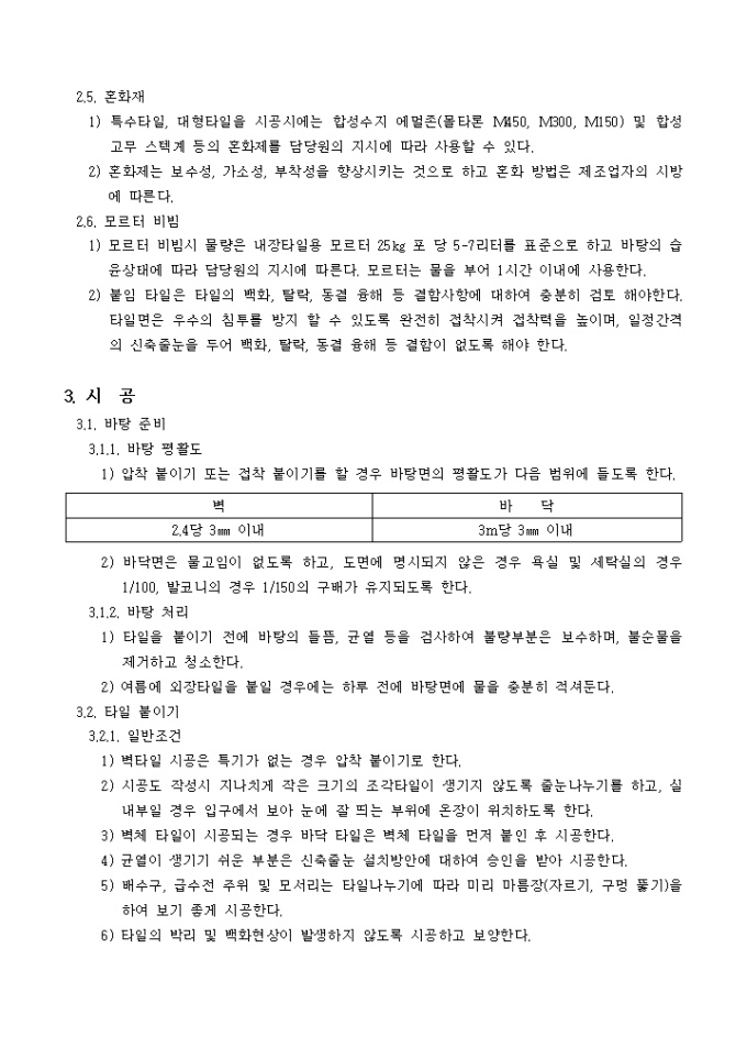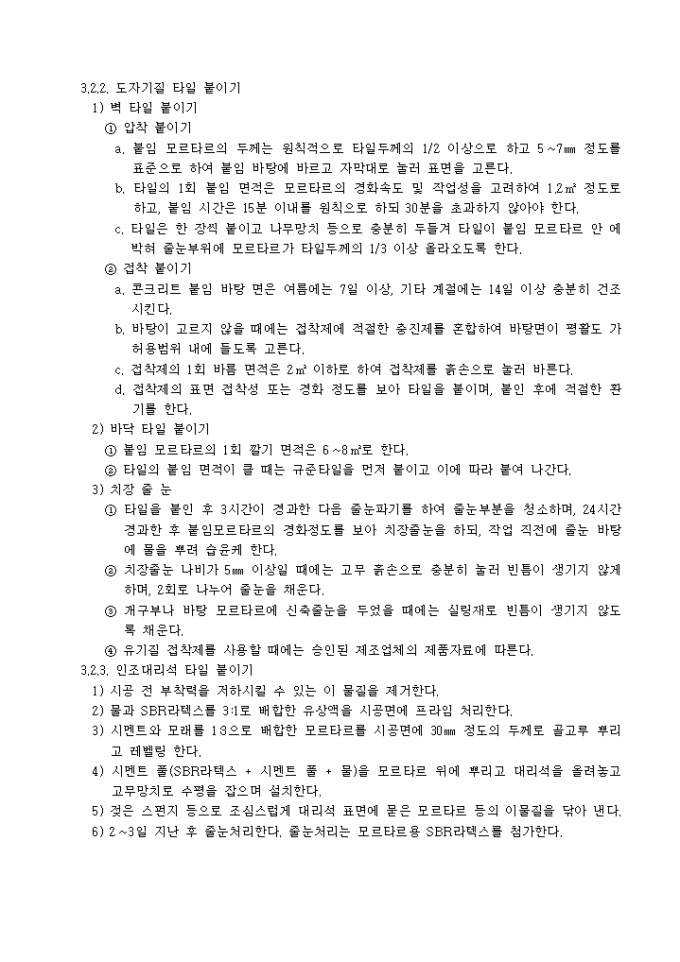 9,000원/월· 타일공사를 위한 인테리어 시방서 양식입니다.· 타일을 사용하여 실내의 바닥.벽 마무리를 하는 타일 붙임공사에 적용할 수 있는 타일공사 시방서입니다.· 일반사항, 재료, 시공 등의 항목으로 구성되어있습니다. 인테리어 업종 관련 서식들을 한눈에!인테리어업종 필수 서식 모음전 바로가기▶