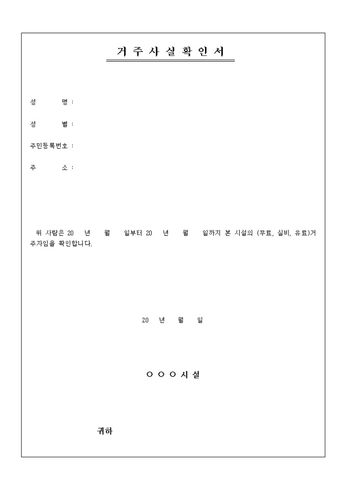 거주사실확인서(시설)