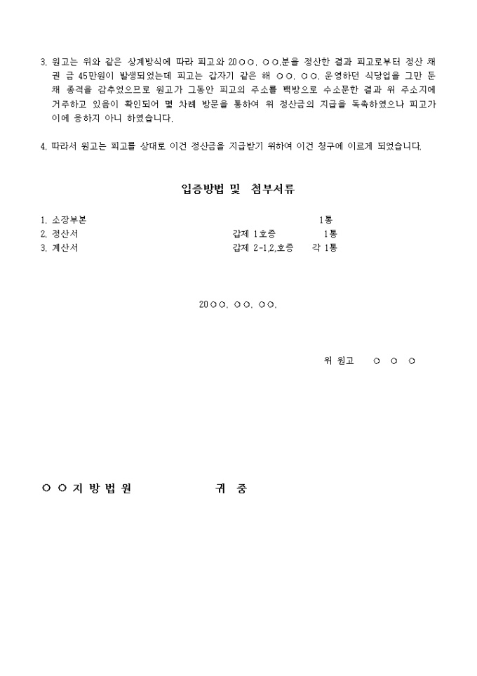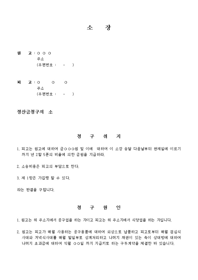 9,000원/월미지급된 정산금을 청구하는 내용의 소장입니다.