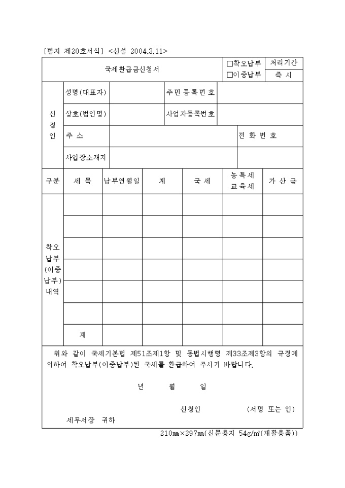2010년 연말정산 제출서류인 국세환급금신청서입니다.