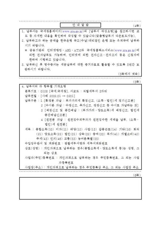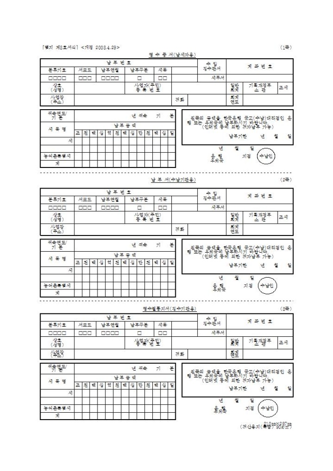 [2010년 연말정산]영수필통지서(징수기관용), 납부서(수납기관용), 영수증서(납세자용)