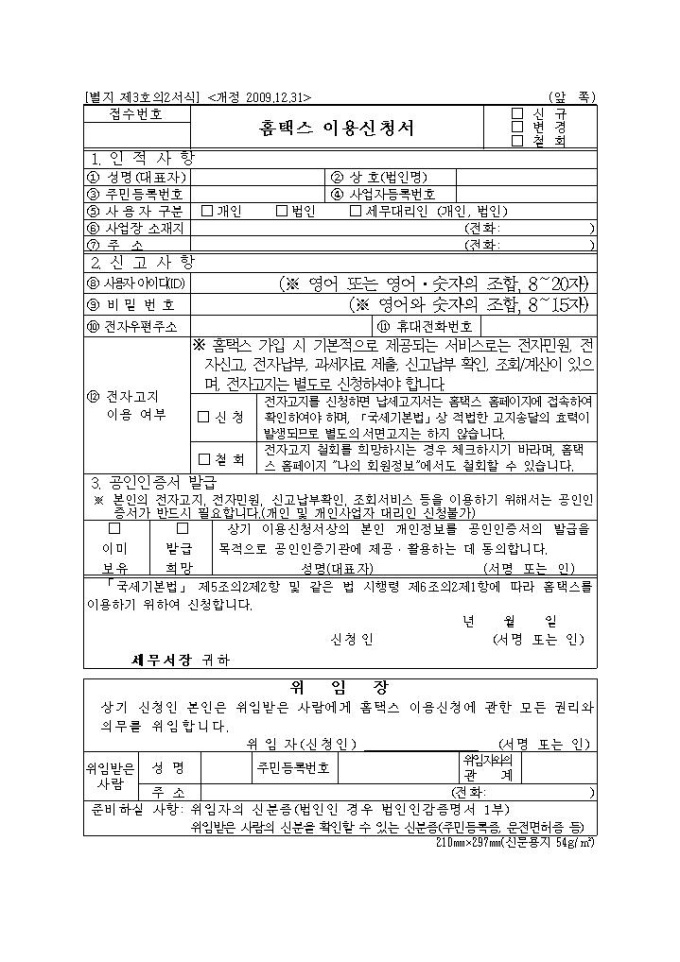 9,000원/월2010년 연말정산 제출서류인 홈택스이용신청서입니다.