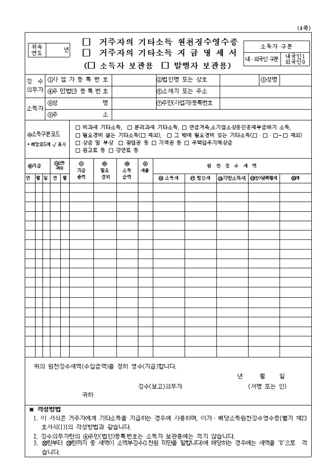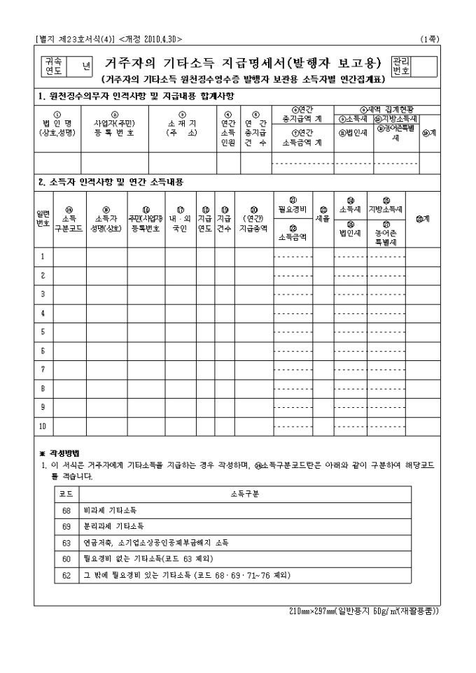 9,000원/월2010년 연말정산 제출서류인 기타소득원천징수영수증, 기타소득지급명세서입니다.