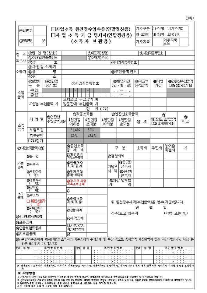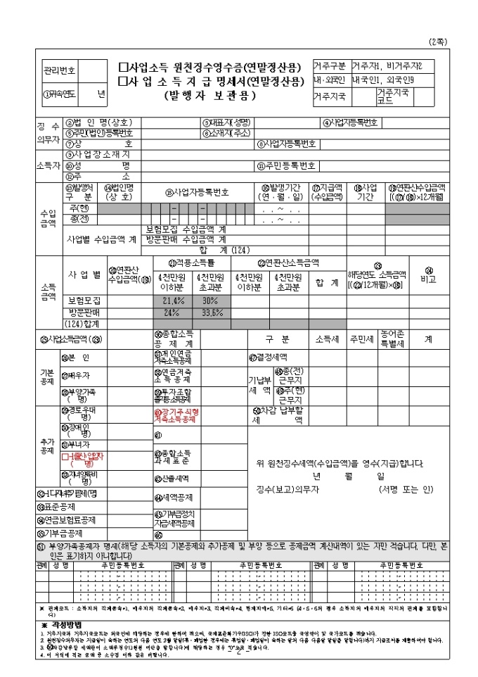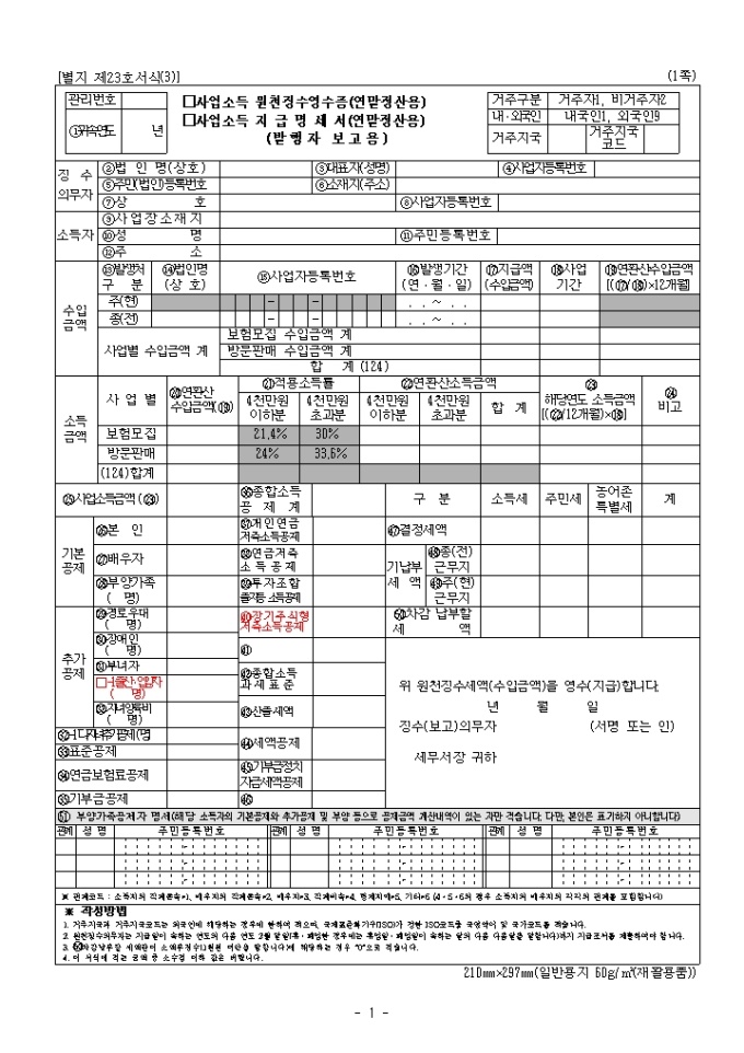 9,000원/월2010년 연말정산 제출서류인 사업소득원천징수영수증(연말정산용), 사업소득지급명세서(연말정산용)입니다.