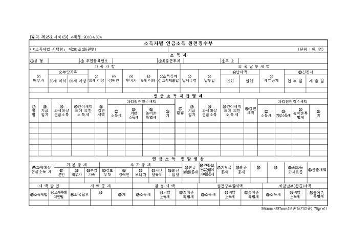 9,000원/월2010년 연말정산 제출서류인 소득자별연금소득원천징수부입니다.