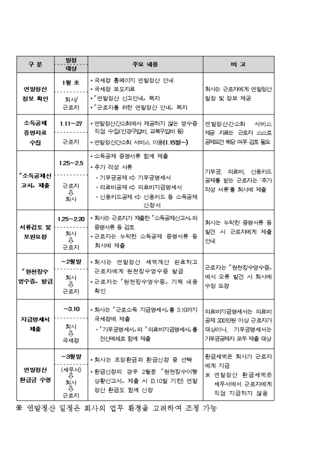 [2010년 연말정산]2010년 귀속 연말정산 표준 일정표