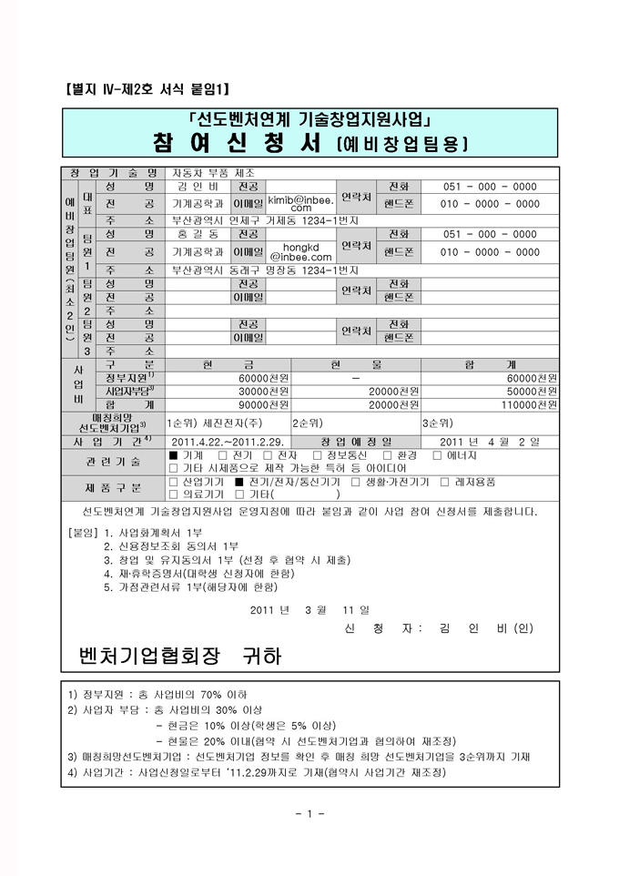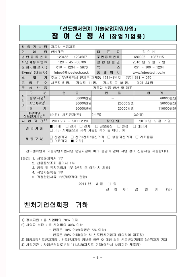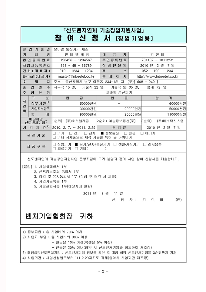 * 문의 및 접수 : 벤처기업협회(02-890-0623), 창업넷(http://www.changupnet.go.kr/jiwon)