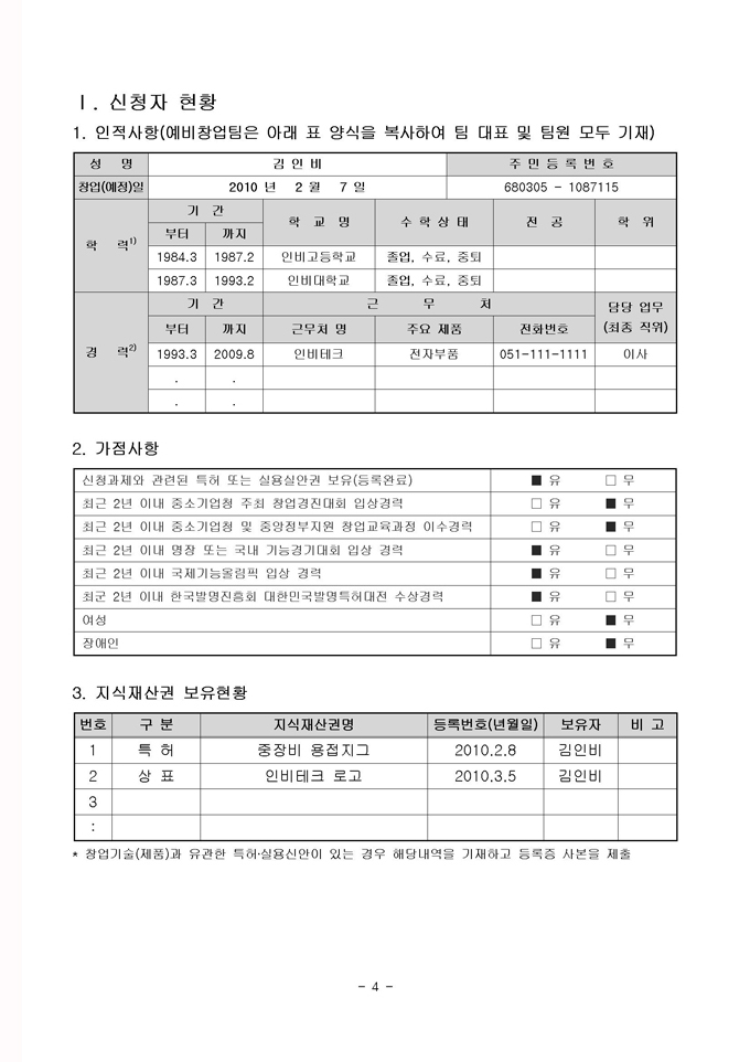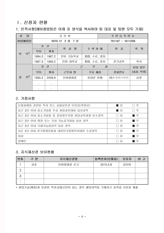 1. 창업자 사전준비 (창업넷 신청서 작성) 2. 선도벤처 연계 기술창업 지원사업 참여신청서 작성 3. 사업화 계획서 작성 4. 창업 및 유지 동의 |