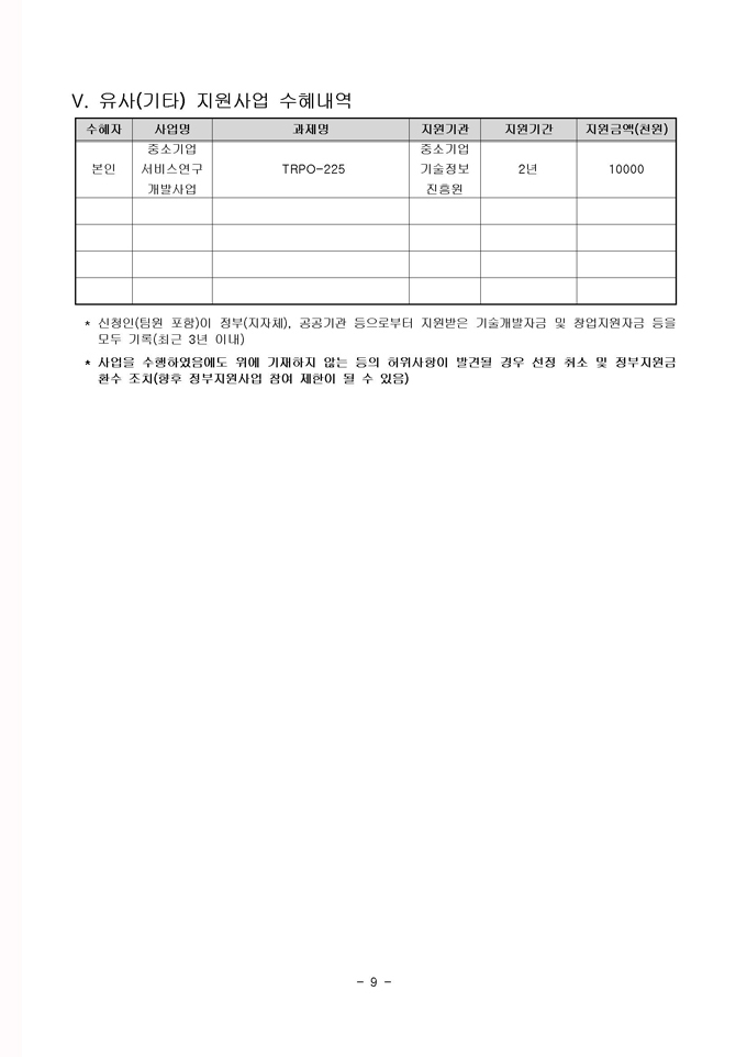 지원규모 : 총 30억원 지원금액 : 기술창업자당 최대 90백만원 지원 |
