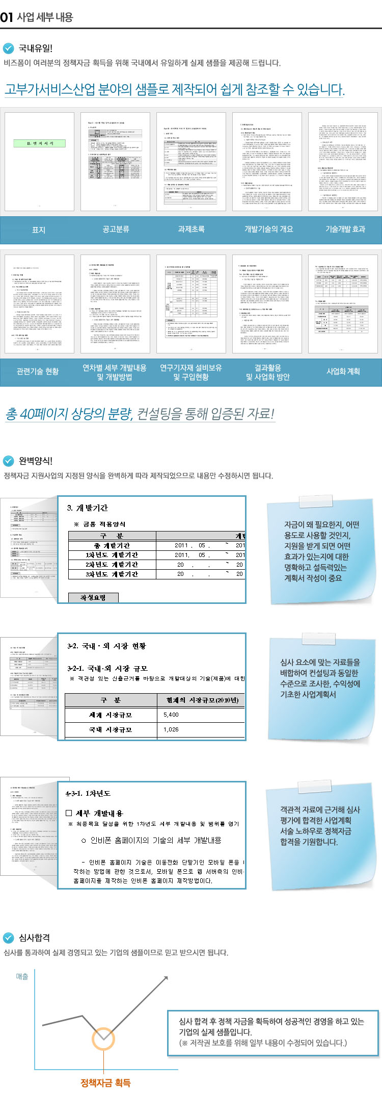 9,000원/월국내유일! 고부가 서비스 부분의 중소기업 서비스 연구개발사업 사업계획서 샘플 입니다. 2011년 정부에서 지원하는 중소기업 서비스 연구개발사업은 지원규모는 총 100억원이며, 서비스 분야에 활용되는 신상품 및 신기술의 개발하는 중소기업에게 좋은 기회가 될 것입니다.