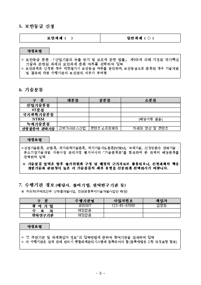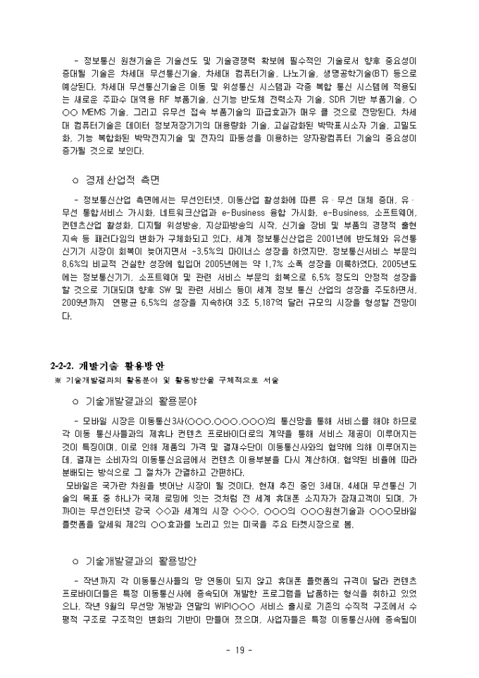 * 본 샘플은 모바일 통신기기(정보통신), 주조 및 금형생산(제조업), 자동차 부품(생산)을 기준으로