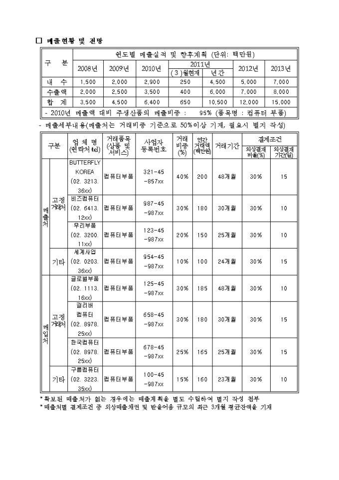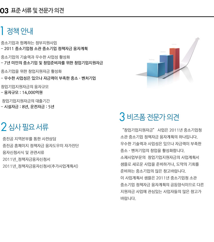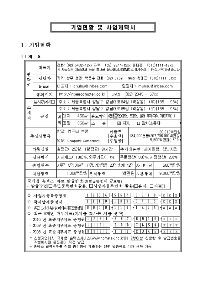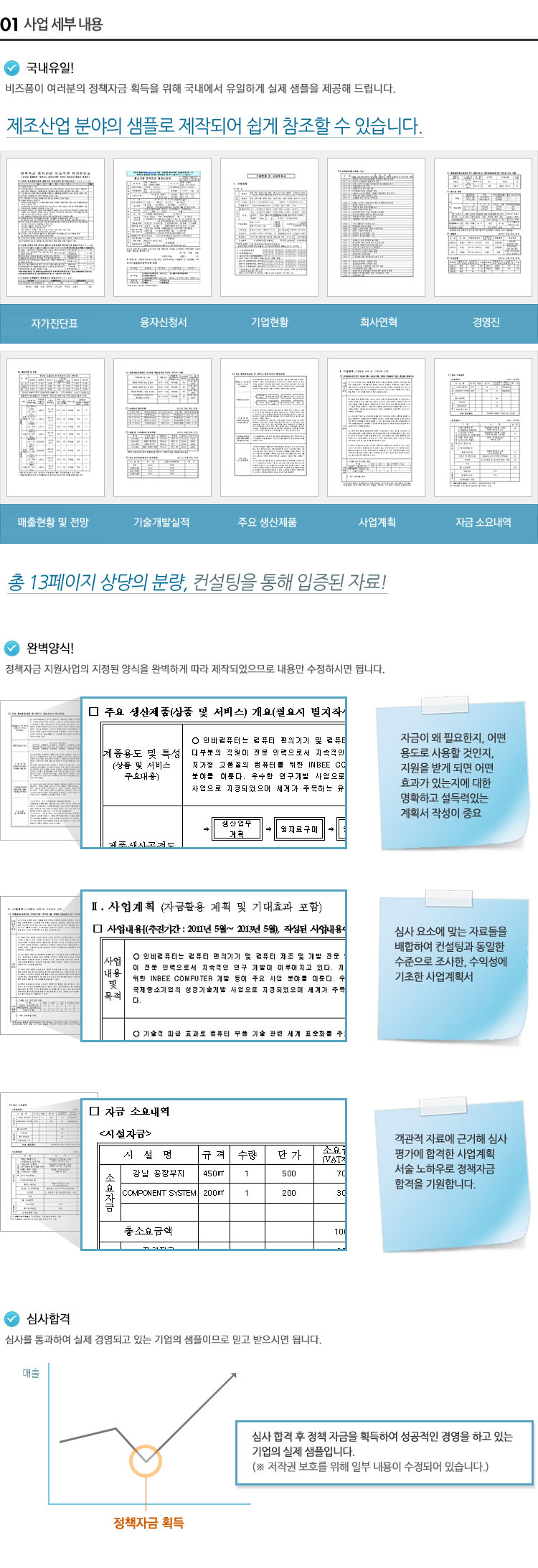 국내유일! 중소기업 창업기업지원자금 제조업분야의 사업계획서 샘플입니다. 2011년 정부에서 지원하는 중소기업창업기업자금 지원규모는 총 14,000억원이며, 창업 및 재창업을 준비하는 중소기업에게 좋은 기회가 될 것입니다.