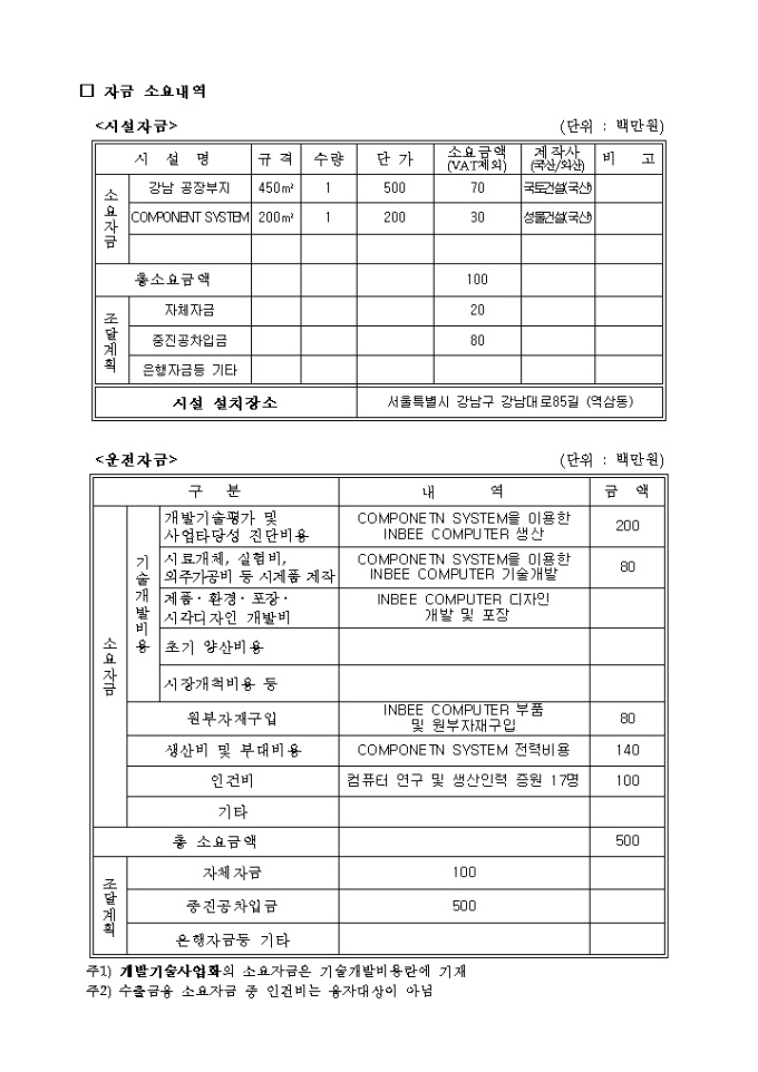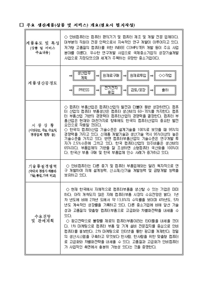 중소기업 창업기업지원자금(제조업)사업계획서 샘플