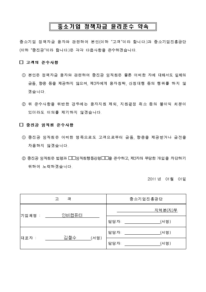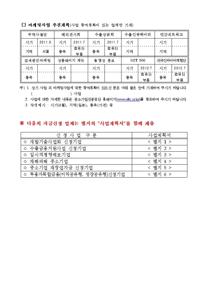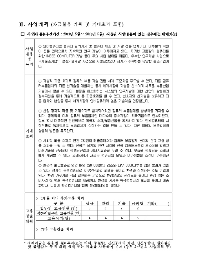 2011년도 중소기업 정책자금 융자신청 (창업기업지원자금) 사업계획서