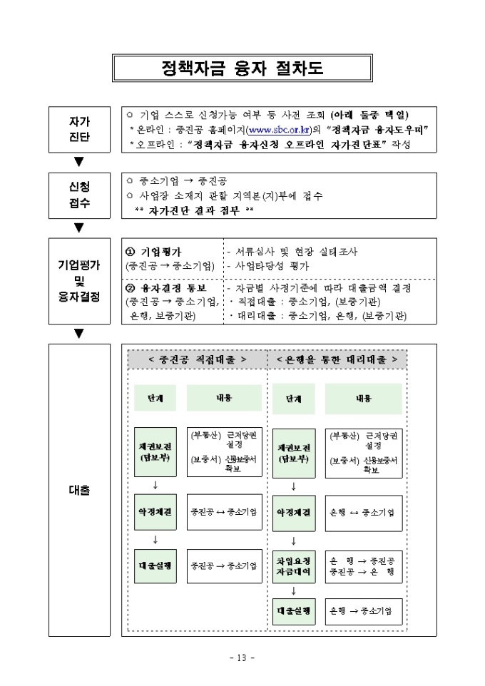 1단계 : 중진공 지역본부 사전상담 또는 중진공 홈페이지 자가진단