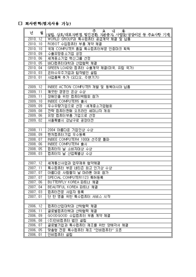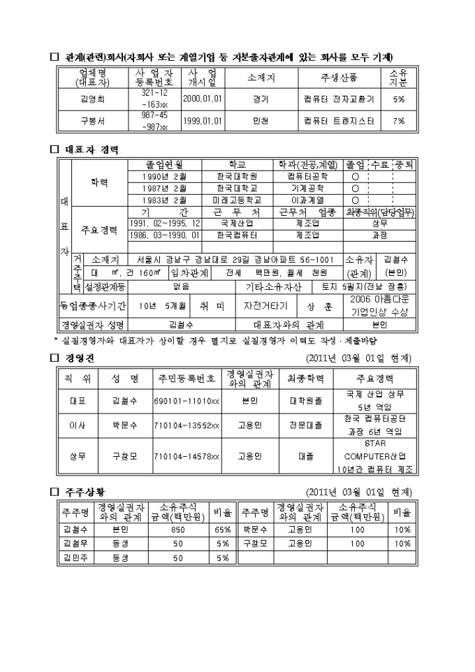 * 본 샘플은 모바일 통신기기(정보통신), 주조 및 금형생산(제조업), 자동차 부품(생산)을 기준으로