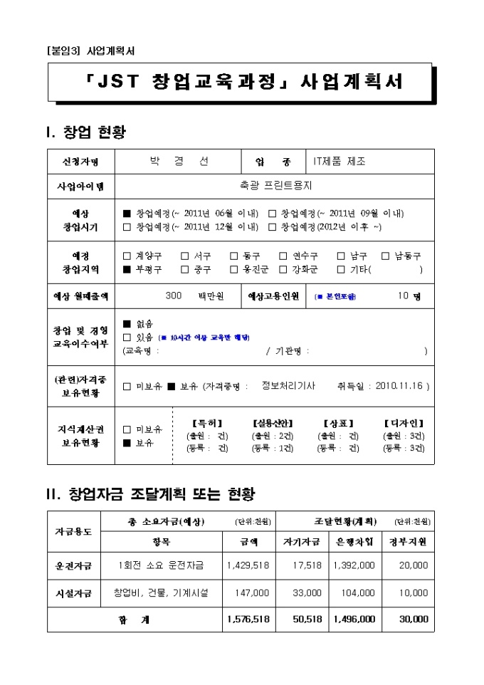 계획중인 사업의 내용에 맞게 수정하여 사용하시기 바랍니다.