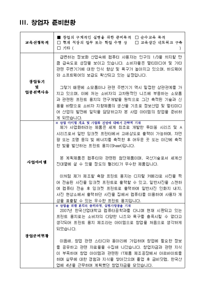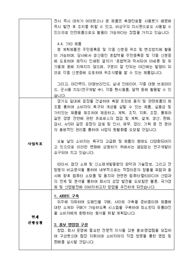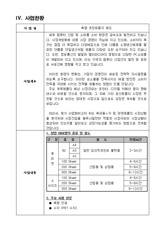 ○ 본 사업계획서 샘플은 IT제품 제조(프린트 용지)를 기준으로 제작되었습니다.