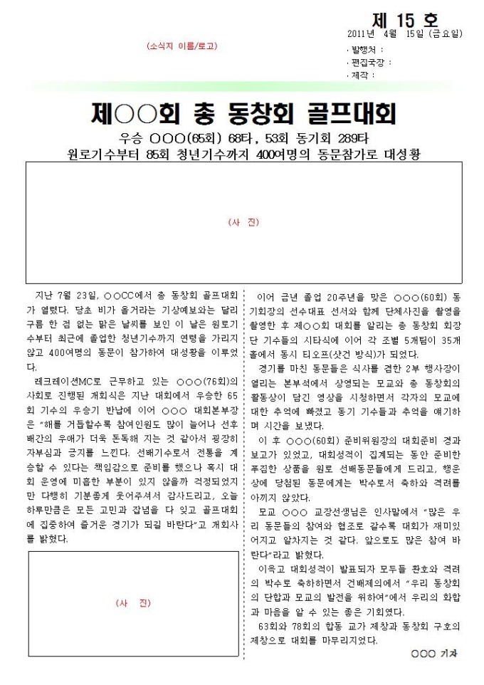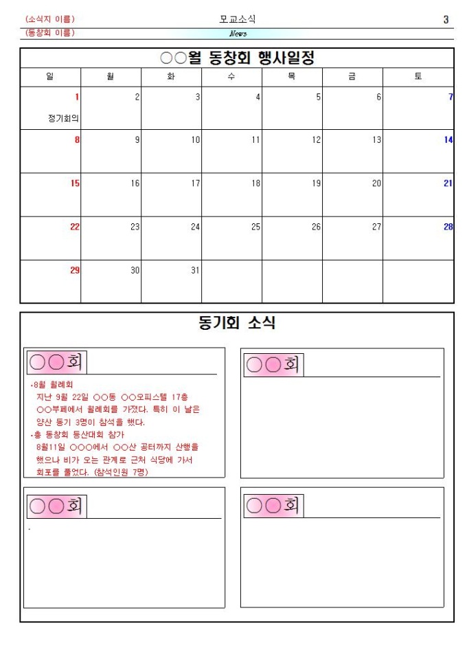 9,000원/월동창회에서 활용할 수 있도록 제작된 소식지 샘플입니다.