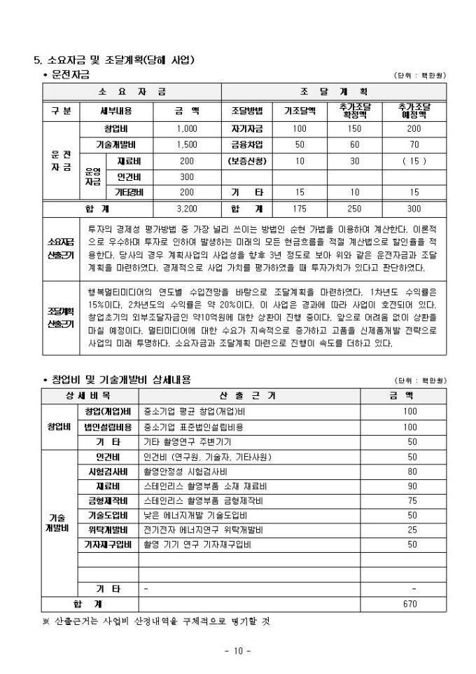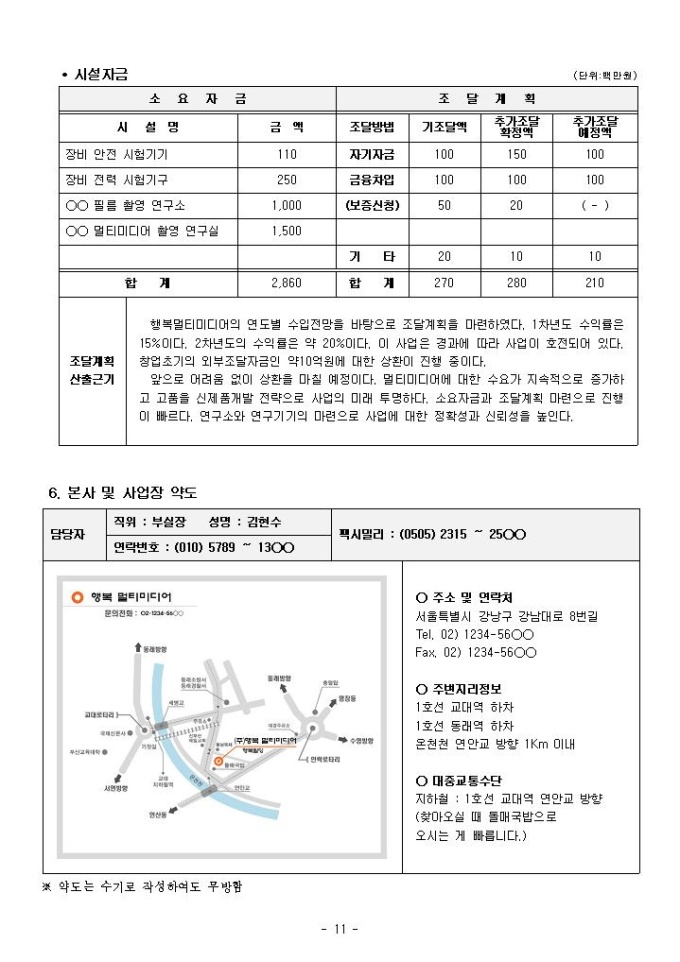 2011년 혁신형 중소기업 기술금융 지원 사업계획서 샘플