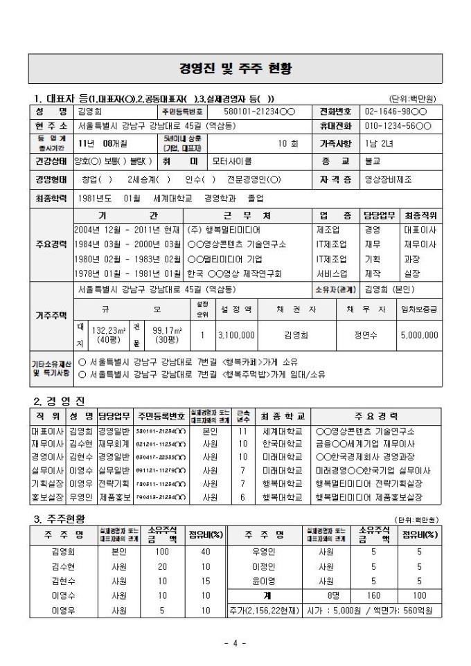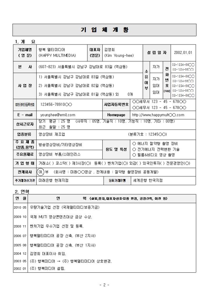 ○ 본 샘플에 사용된 모든 명칭 및 수치는 저작권 보호를 위해 가명처리 및 가상으로 입력되었습니다.