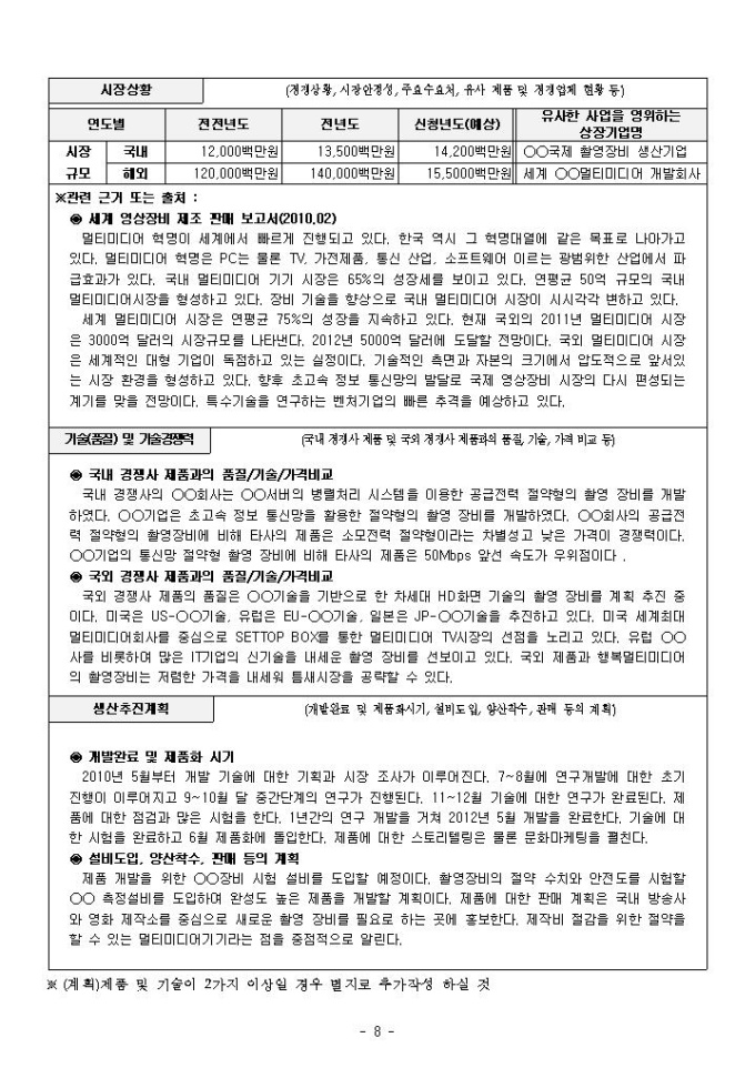 국내 최초! 비즈폼에서 처음으로 '2011년 혁신형 중소기업 기술금융 지원사업' 샘플을 제공합니다. 혁신형 중소기업을 위한 사업계획서입니다.