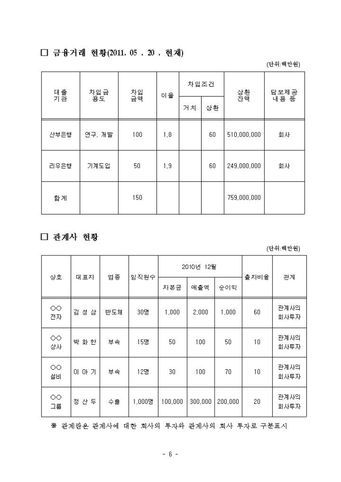 ○ 본 샘플에 사용된 모든 명칭 및 수치는 저작권 보호를 위해 가명처리 및 가상으로 입력되었습니다.