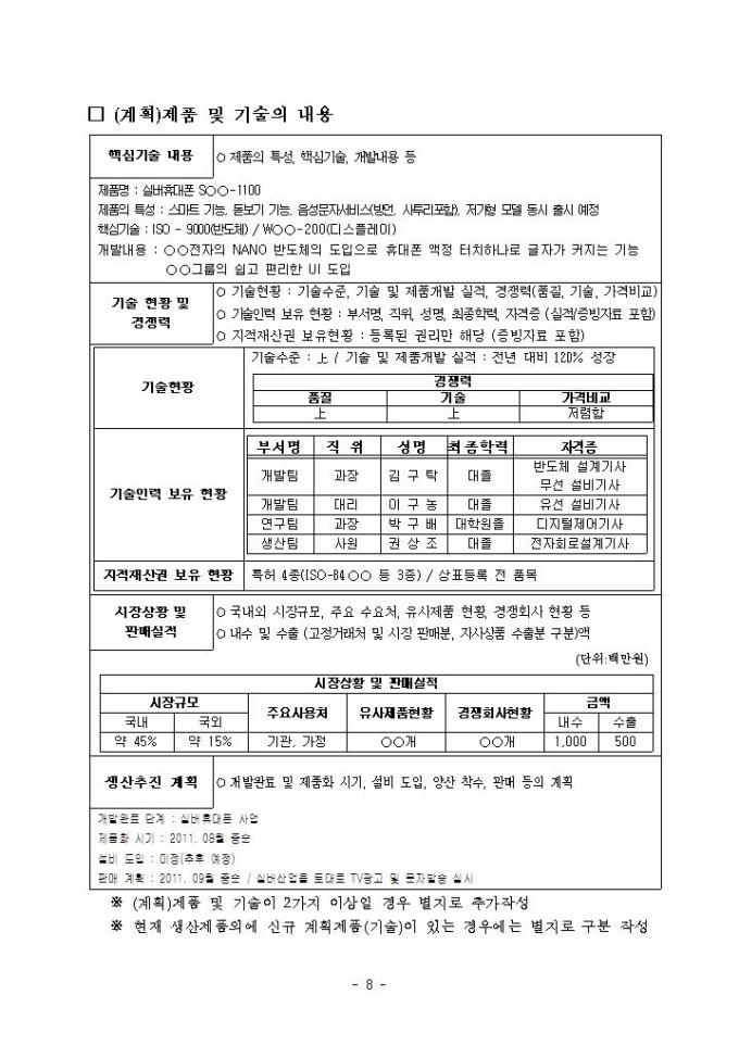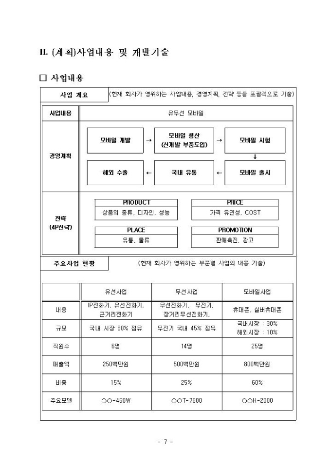 ○ 본 사업계획서 샘플은 제조업(유무선모바일) 분야를 기준으로 제작되었습니다.